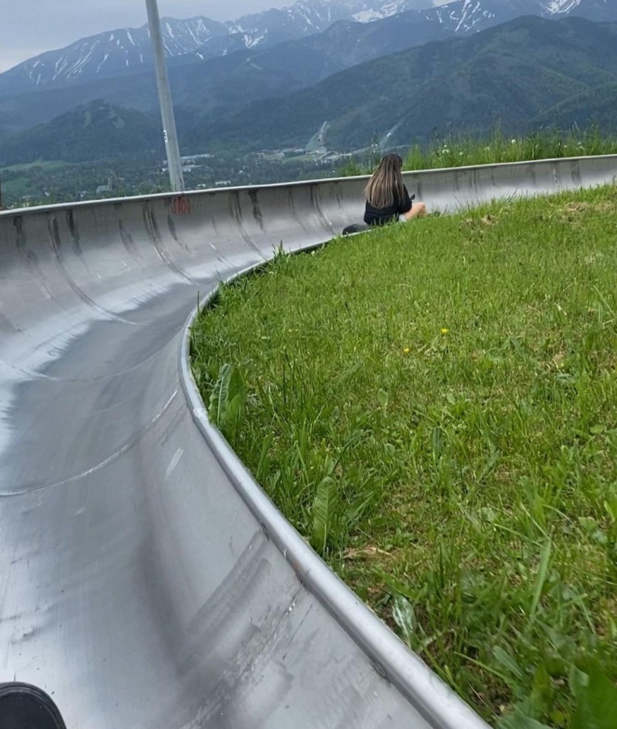 We then next ventured to the city of Zakopane, where we had a few hours of free time to explore. We went up the Funicular Railway to the top of the mountain, and experienced magnificent views of the Tatra Mountains. We rode the toboggan a few times, which I highly recommend doing, it was such a fun activity. There are a lot of stores to explore at the top of the mountain, and A LOT of cheese. If you eat meat, I highly recommend trying one of the skewered meat dishes, usually served with bread. We then caught the cable car down the mountain, and explored the local village, including the Krupowki pedestrian street. So many beautiful stores to explore there.